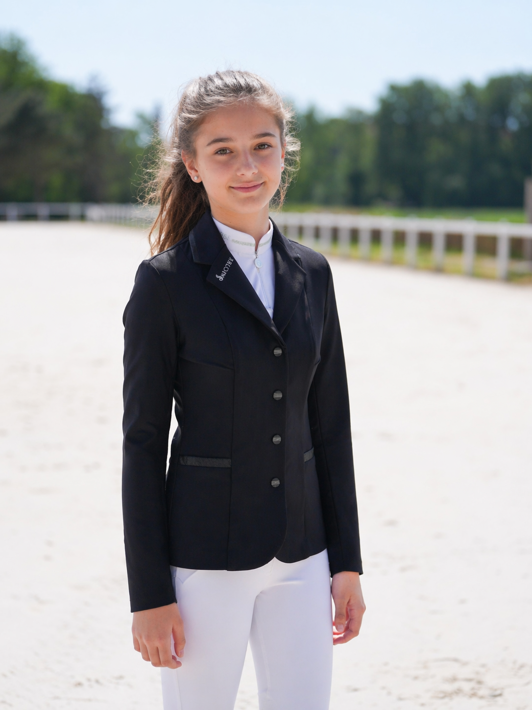Veste de concours en tissu technique noir.